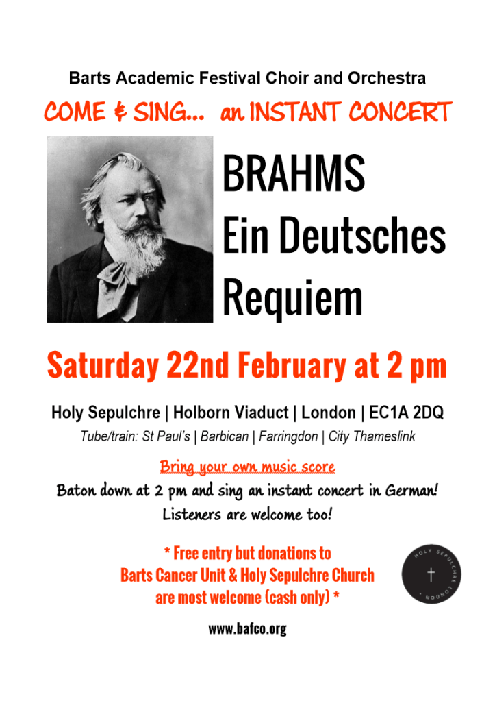 Entry is free! Donations to Barts Cancer Unit and Holy Sepulchre are welcome (cash only).