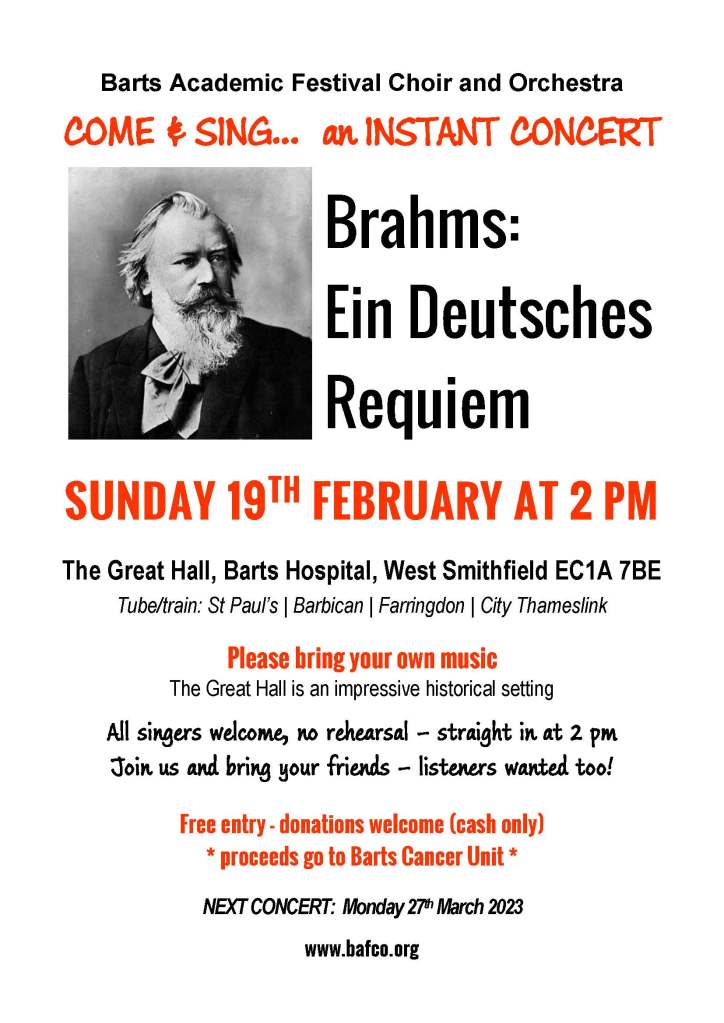 We will also be preparing for our next Come & Sing in February, which will be Verdi Requiem. We have a wonderful instant concert on a Saturday afternoon with soloists, choir and orchestra. All that we ask is that you bring your own score.