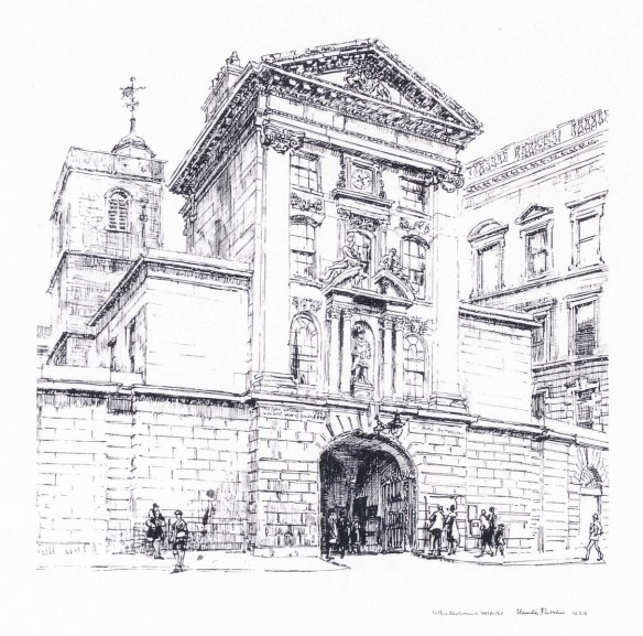 During the reformation the priory of St Bartholomew was closed in 1539, but the hospital remained open. Eventually, on his death bed, Henry VIII signed the charter of 1546, granting the hospital to the City, and letting it be called The Royal Hospital of St Bartholomew. In 1609 William Harvey became Physician to the hospital. He was the first to demonstrate the circulation of the blood and these works, published in 1628, were later recognised as the foundation of modern medicine. Other distinguished clinicians who practised at Barts included Percival Pott and James Paget. The hospital remained open during the Great Plague of 1665; the surgeons and physicians fled to the country leaving the Matron and the Apothecary to tend to the patients. The hospital escaped the Great Fire of London the following year. It remained open and largely survived the bombing of the Second World War. On this occasion a full complement of medical and nursing staff looked after the victims of the Blitz. The Gatehouse, designed by Christopher Wren’s nephew, was completed in 1702 and houses the statue of Henry VIII, the only one of this monarch in London. The buildings of the square and the fountain were the work of James Gibb.