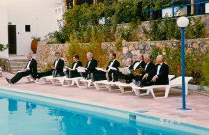 The Christ Church Choir pre-dated the orchestra by more than a decade and a cohort of about a dozen voices transferred to Barts in 1973. They were joined by an similar number drawn from the G&S Society and elsewhere in the Hospital and Medical School. The size of the group has remained twenty to thirty, being supplemented for larger ventures. Although a few choristers melted away after one or two attendances, the average stay has been about five years and a few have picked up their forty-year attendance allowance. A number of members have come, gone and returned, this usually being linked to clinical commitments. Friday night rehearsals are uncommon – they suit a clinical timetable but interfere with long weekends – mandatory attendance would quickly decimate the ranks. For some it is a time to relax, for others time to re-focus. Group concentration is usually maintained for fifteen to twenty minutes at a time, which might explain the conductor’s rather negative attitude towards preliminary vocal exercises.