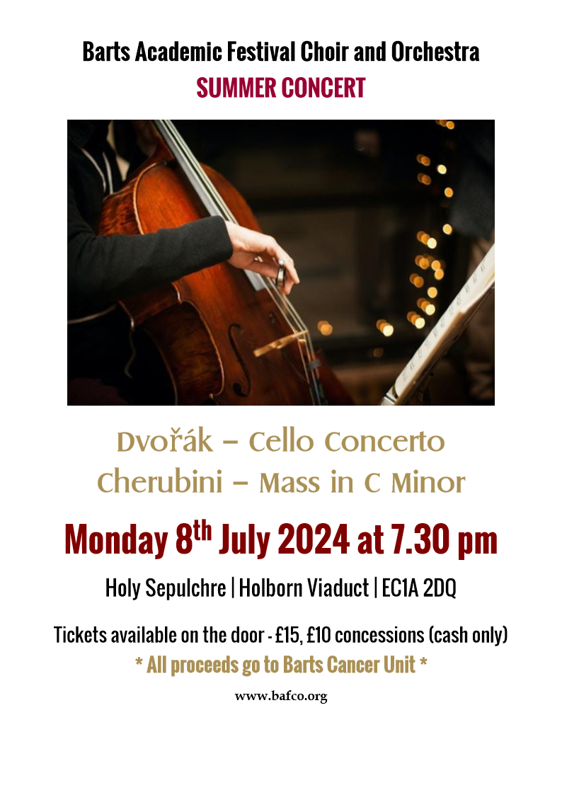 • Entry is free but cash donations to Barts Cancer Unit/Holy Sepulchre Church are most welcome.