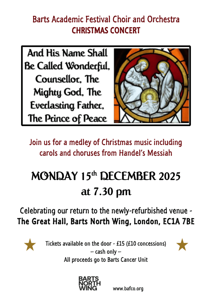 We are pleased and excited to be holding our Christmas 2025 concert back in The Great Hall at Barts North Wing following the two-year restoration programme.