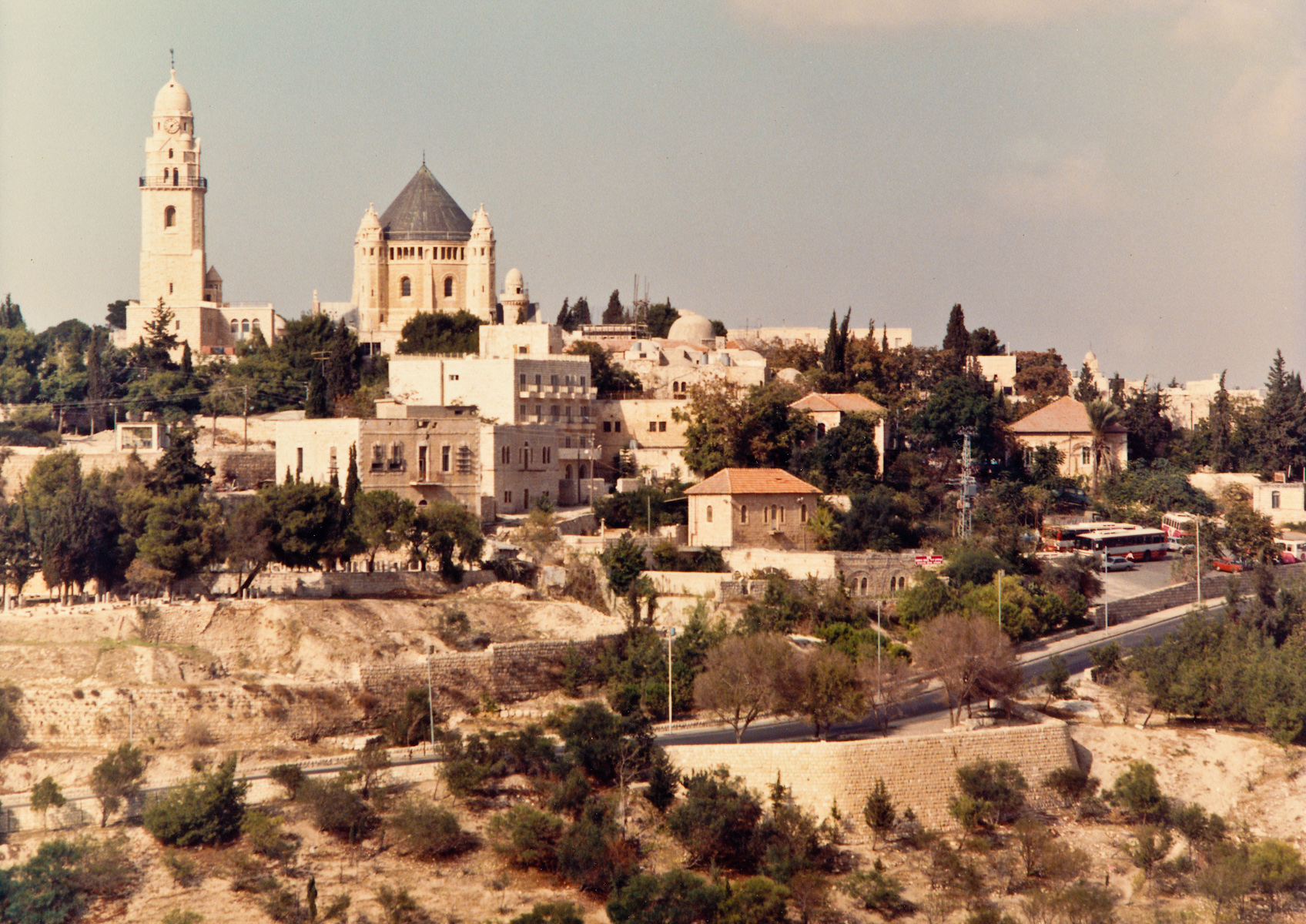 The tour of Israel in 1984 was thanks to the sponsorship of Barnett Shine who had heard of the previous tour from JSPL and wished to widen our ecclesiastical parameters. Barnett Shine contacted Teddy Kollek, Mayor of Jerusalem, who put Yehudi Fickler, the Administrator of the Jerusalem Symphony Orchestra, in charge of our visit. One hundred and twenty of us arrived in Ben Gurion Airport early in the morning and travelled to a splendid kibbutz inn high in the Judean hills overlooking Jerusalem. We were gradually allocated rooms and then were off to visit old Jerusalem. After a rehearsal, a rather sleepy group returned for the evening performance of the Creation in the Benedictine Dormition Abbey on Mount Zion. Nevertheless, a great performance ensued.