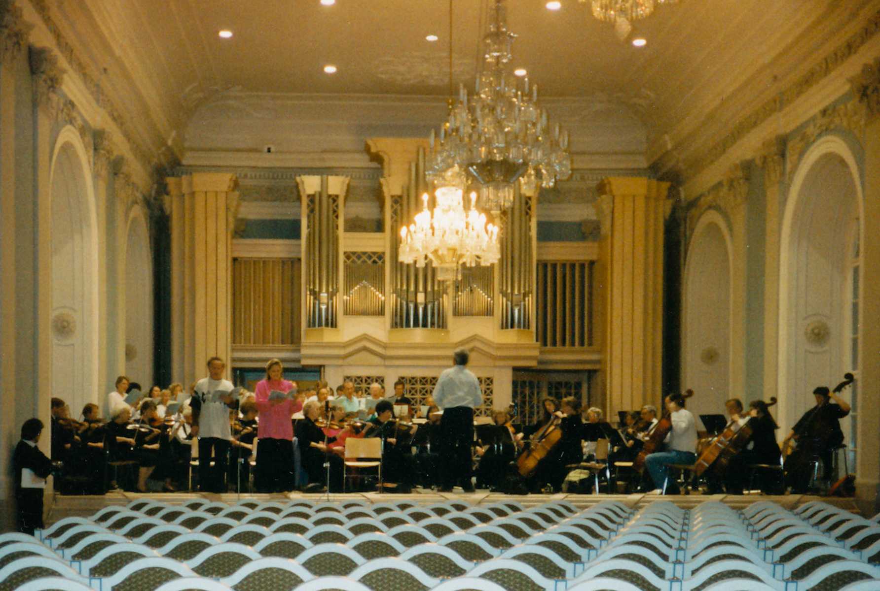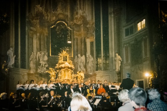 We were grateful to the daughter of the late Vaclav Smetacek, Conductor of the Czech Philharmonic Orchestra, for her help with the visit. For the first time we performed the Messiah on tour; this was in the beautiful setting of St Stephen’s Church which is frequently used for broadcasting. Other church concerts included that in Emauzy, where we performed the Rutter Requiem, and we took part in a service at St Iesulus, performing the Nelson Mass, followed by a performance of Beethoven’s Symphony No 7. Our small group concert was given in the magnificent Martinu Hall and included some wind music by this composer.